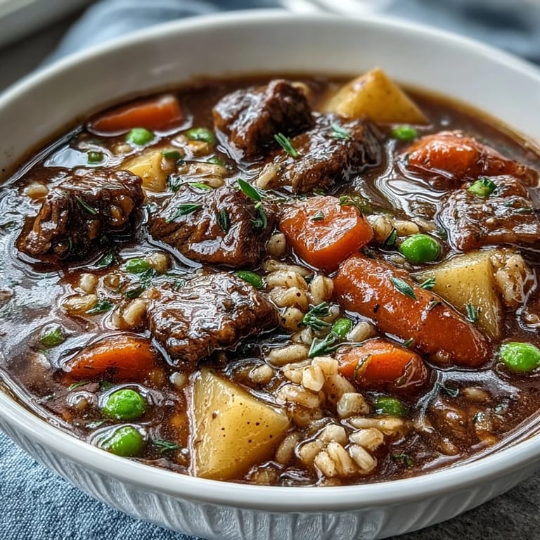 Save to Pinterest My neighbor stopped by one October afternoon when the kitchen smelled like caramelized beef and herbs, and she asked what I was making before even stepping inside. That's when I realized beef and barley soup has this quiet power—it announces itself before you taste it, drawing people in with warmth and promise. I'd been making it for years by then, adjusting here and there, but that moment reminded me why I keep coming back to it: nothing feels quite as honest as a pot of soup that says, "I've been simmering while you lived your day."