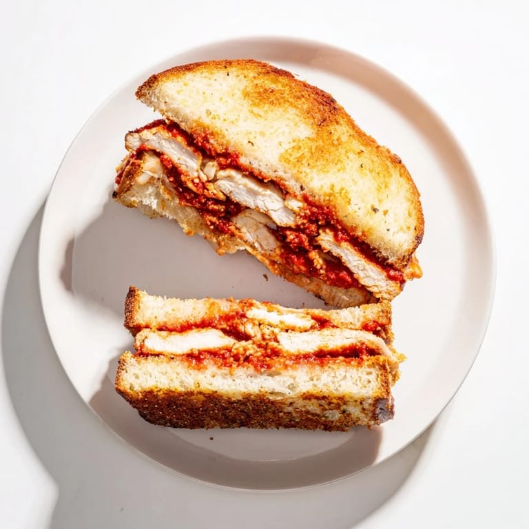 Save to Pinterest My roommate burst through the door one evening holding a bag of groceries and announced she was making grilled cheese for dinner. I was skeptical until I saw her pull out breaded chicken cutlets and a jar of marinara. What happened next in that tiny apartment kitchen changed how I thought about sandwiches forever. The sizzle of garlic butter hitting the hot pan, the stretch of melted mozzarella, the crunch of golden bread giving way to tender chicken it was chaos and magic all at once.