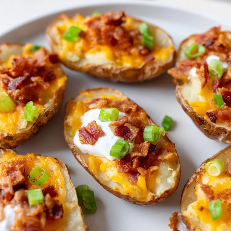Save to Pinterest The first time I made potato skins, I was hosting a last minute game day gathering and had zero appetite for anything fancy. My grandmother had mentioned how restaurants charge markup for something that's basically potato leftovers, so I decided to try them myself. The smell of bacon sizzling while potatoes baked filled the entire apartment, and suddenly my friends were arriving early instead of fashionably late. Now they're my go to when I want people to feel instantly at home.