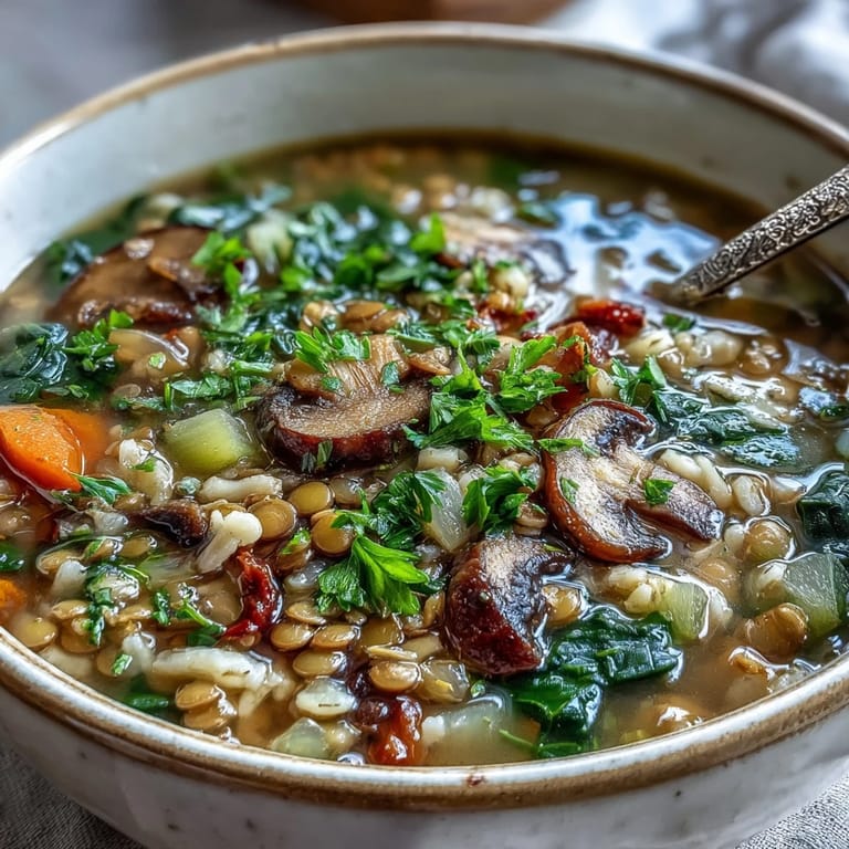 Save to Pinterest There's something about the smell of mushrooms hitting hot oil that makes me pause mid-chop and just breathe it in. That's when I know a soup is going to be good. This double lentil and barley creation came together one gray afternoon when I wanted something hearty enough to silence the rumbling in my stomach but gentle enough not to weigh me down. The combination of red and brown lentils creates this unexpected creaminess, while the barley adds a subtle chew that keeps things interesting.