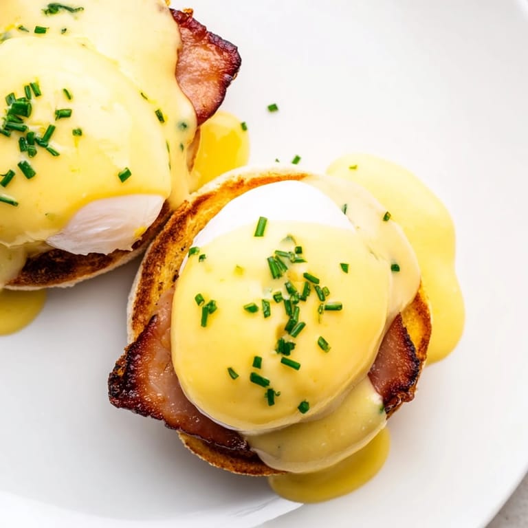 Save to Pinterest The first time I attempted Eggs Benedict, I stood over a pot of simmering water with my heart racing, certain I would break every single egg. My hollandaise had split into a greasy mess on my first try, and I nearly called for takeout. But something about that combination of velvety sauce, runny yolk, and toasted bread kept me trying. Now it has become my go-to comfort breakfast for slow Sunday mornings when I want to feel like I am dining at a fancy brunch spot without leaving my kitchen.