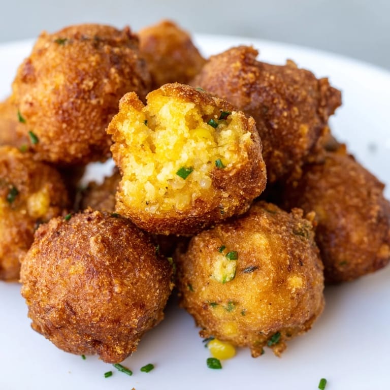 Save to Pinterest The first time I had hushpuppies was at a fish shack in coastal North Carolina, where the owner's grandmother made them fresh every Friday afternoon. She told me the secret was getting the oil temperature just right, not too hot, not too cold, so they'd cook through without burning the outside. When I bit into that first golden ball, steam rising up carrying the scent of sweet onion and corn, I understood why people waited all week for them. The crunch gave way to this incredibly tender, slightly sweet center that made everything else on the plate taste better.