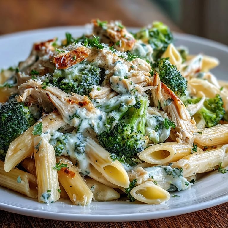 Save to Pinterest The smell of garlic hitting warm olive oil always pulls my husband into the kitchen before I even call him for dinner. One weeknight last spring, I had leftover rotisserie chicken from the grocery store and a bag of broccoli that needed using, so I tossed together this creamy pasta on instinct. The Greek yogurt sauce came out so silky and bright with lemon that he asked if I'd ordered takeout. Now it's our go-to when we want something filling without spending an hour at the stove.