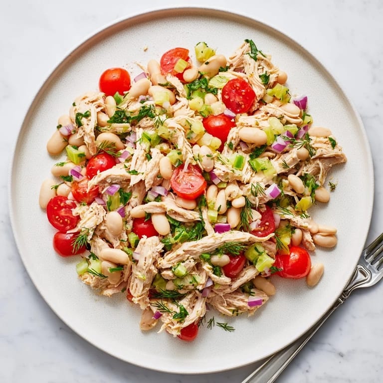 Save to Pinterest The first time I made this salad was during a heat wave when my tiny apartment kitchen felt like an oven. I craved something substantial but refused to turn on the stove or even think about warm food. That afternoon, combining leftover rotisserie chicken with creamy white beans and an aggressively lemony dressing felt like discovering summer on a plate. My roommate wandered in, skeptical about cold chicken salad, and ended up eating half the bowl standing at the counter.