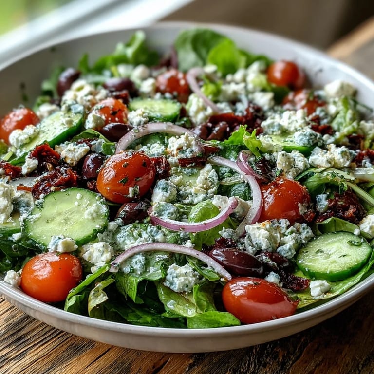 Save to Pinterest There's something about assembling a Mediterranean salad that feels less like cooking and more like painting with vegetables. My neighbor Maria once caught me in the garden on a summer afternoon, debating whether to use arugula or baby spinach, and she laughed—said the real magic wasn't in choosing perfectly, it was in tossing everything together with good olive oil and not overthinking it. That conversation stuck with me, especially when life gets rushed and I need something that tastes like sunshine in a bowl without any fussing.