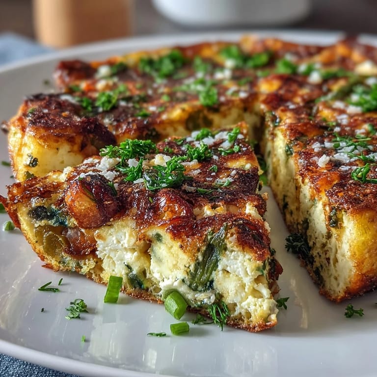 This frittata’s balance of fresh veggies and rich cheeses creates a comforting yet nutritious meal. The golden puffed top and fluffy texture come from careful whisking and oven-baking, while fresh herbs add bursts of flavor in every bite.